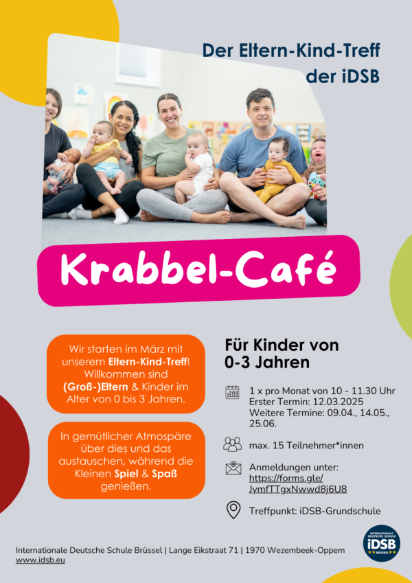 Erstes Krabbeln, erste Schritte, gemeinsames Entdecken: Ab März 2025 wird die Internationale Deutsche Schule Brüssel (iDSB) zu einem Treffpunkt für die Kleinsten und ihre Familien. Mit dem neuen Eltern-Kind-Treff bietet die Schule einmal im Monat eine herzliche Einladung an Eltern, Großeltern und ihre Kinder im Alter von 0 bis 3 Jahren. In einer gemütlichen und […]