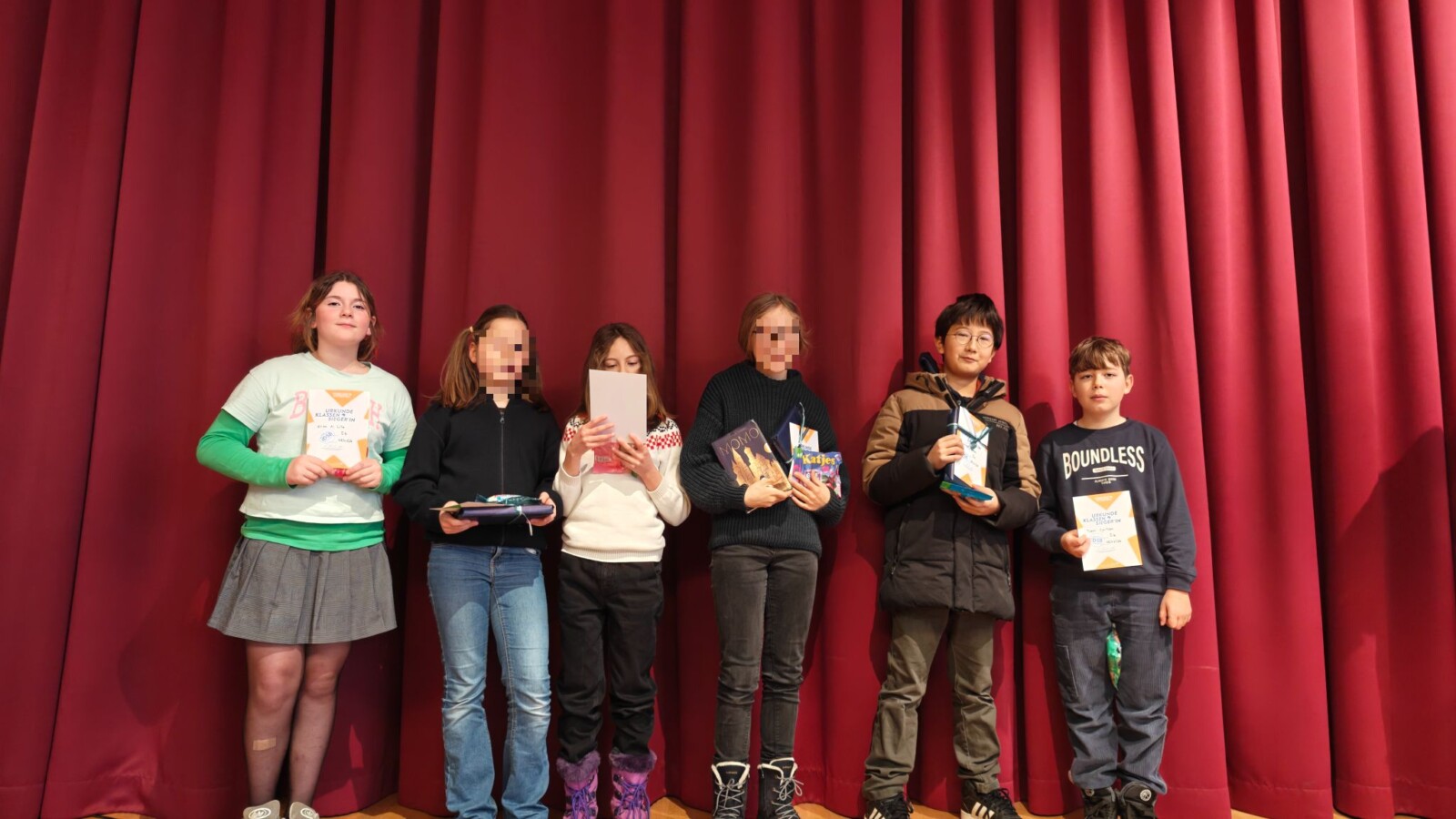 Am 7. Januar starteten wir mit sechs Leser*innen aus den Klassen 6a und 6b. Charlotte, Emilio, Marius, Felix, Alisa und Edda lasen zunächst in ausgeloster Reihenfolge aus ihren ausgewählten Büchern vor. Die Geschichten waren mitunter lustig und spannend und zogen alle Zuhörer*innen in ihren Bann. Im zweiten Teil mussten die Schüler*innen einen Text aus einem unbekannten Buch vorlesen. Hier kam es vor allem darauf an, die Geschichte schnell zu erfassen und die Stimmung rüberzubringen.