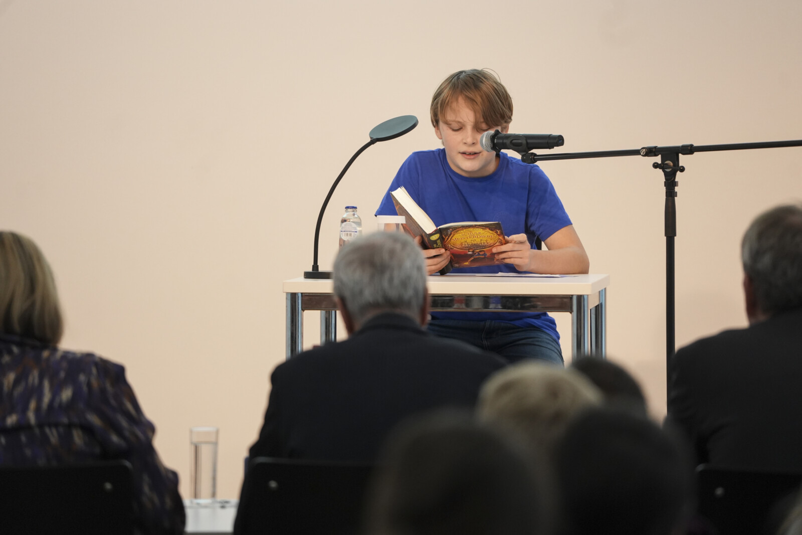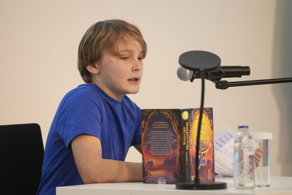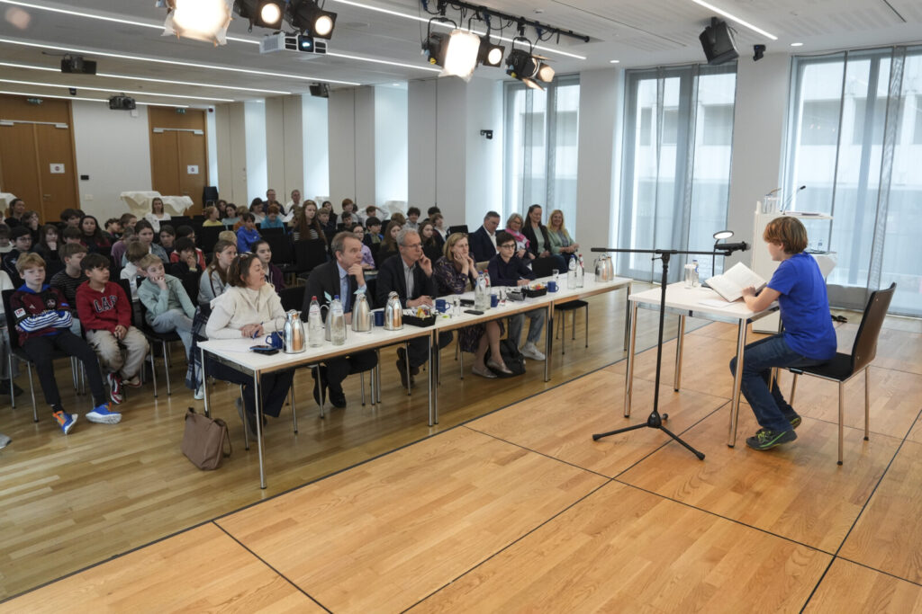 Die teilnehmenden Schüler*innen, die sich der fünfköpfigen Jury stellten, kamen von den deutschsprachigen Sektionen der Europäischen Schulen I bis IV sowie von der iDSB. Die Jury bestand aus: Frau Anna Lischka vom Österreichischen Kulturforum, Herrn Gerhard Salbeck vom Goethe Institut, Frau Fatma Girretz von der Vertretung der Deutschsprachigen Gemeinschaft und Petar, von der Europaschule 1 in Uccle, der letztes Jahr den Vorlesewettbewerb gewonnen hat.