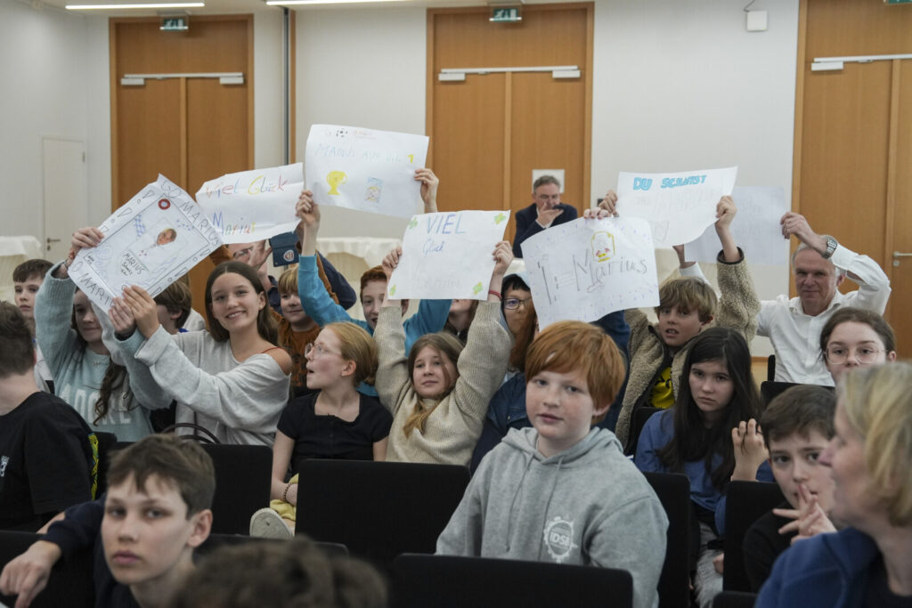 Marius Schmitz aus der 6a trat als Vertreter der iDSB an und belegte in einem qualitativ hochwertigen Wettbewerb einen hervorragenden dritten Platz. Seine Mitschüler*innen, die ihn mit selbstgemachten Plakaten unterstützten, waren stolz auf ihn.