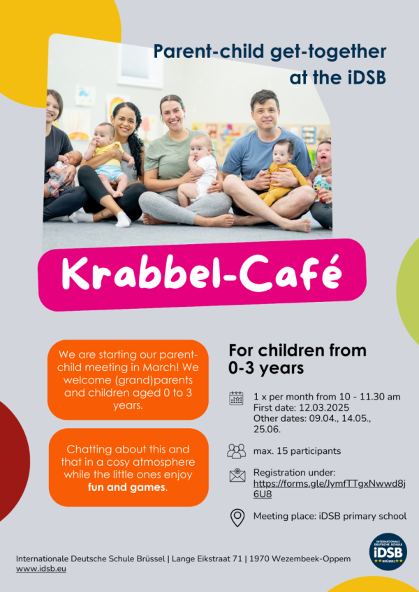 First crawls, first steps, shared discoveries: Starting in March 2025, the International German School of Brussels (iDSB) will become a meeting place for the youngest children and their families. With the new Parent-Child Meetup, the school warmly invites parents, grandparents, and their children aged 0 to 3 to join once a month. Details at a […]