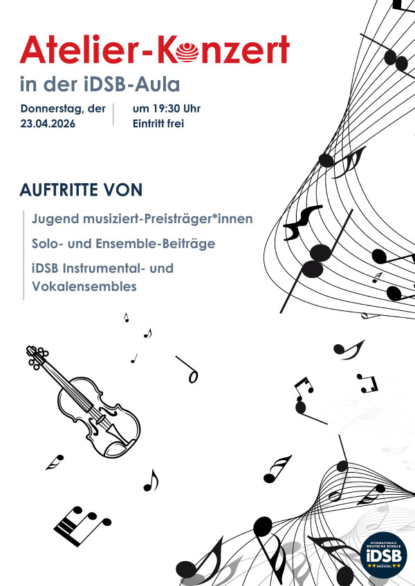 The iDSB Music Department cordially invites you to this year’s Atelier Concert. On 23 April 2026 at 7.30 pm, this year’s ‘Jugend musiziert’ prize-winners and other talented pupils will present their musical performances in the iDSB auditorium. This concert format offers competition participants and dedicated musicians the opportunity to showcase their skills in front of […]